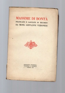 MASSIME DI BONTA' praticate e lasciate in ricordo da mons. Giovanni Veronesi, Tipografia pontificia vescovile S. Giuseppe, 1926, 56 pag., 16.5x11 cm.Piccoli segni dati dal tempo che non compromettono...