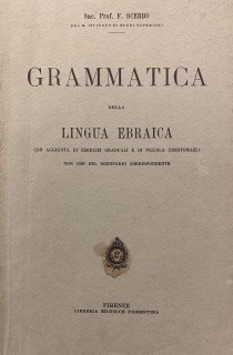 GRAMMATICA DELLA LINGUA EBRAICA CON AGGIUNTA DI ESERCIZI GRADUALI E DI PICCOLA CRESTOMAZIA di Sac. Prof. F. Scerbo, Libreria editrice Fiorentina, 1912, 23x14 cm.Volume molto raro da reperire in...