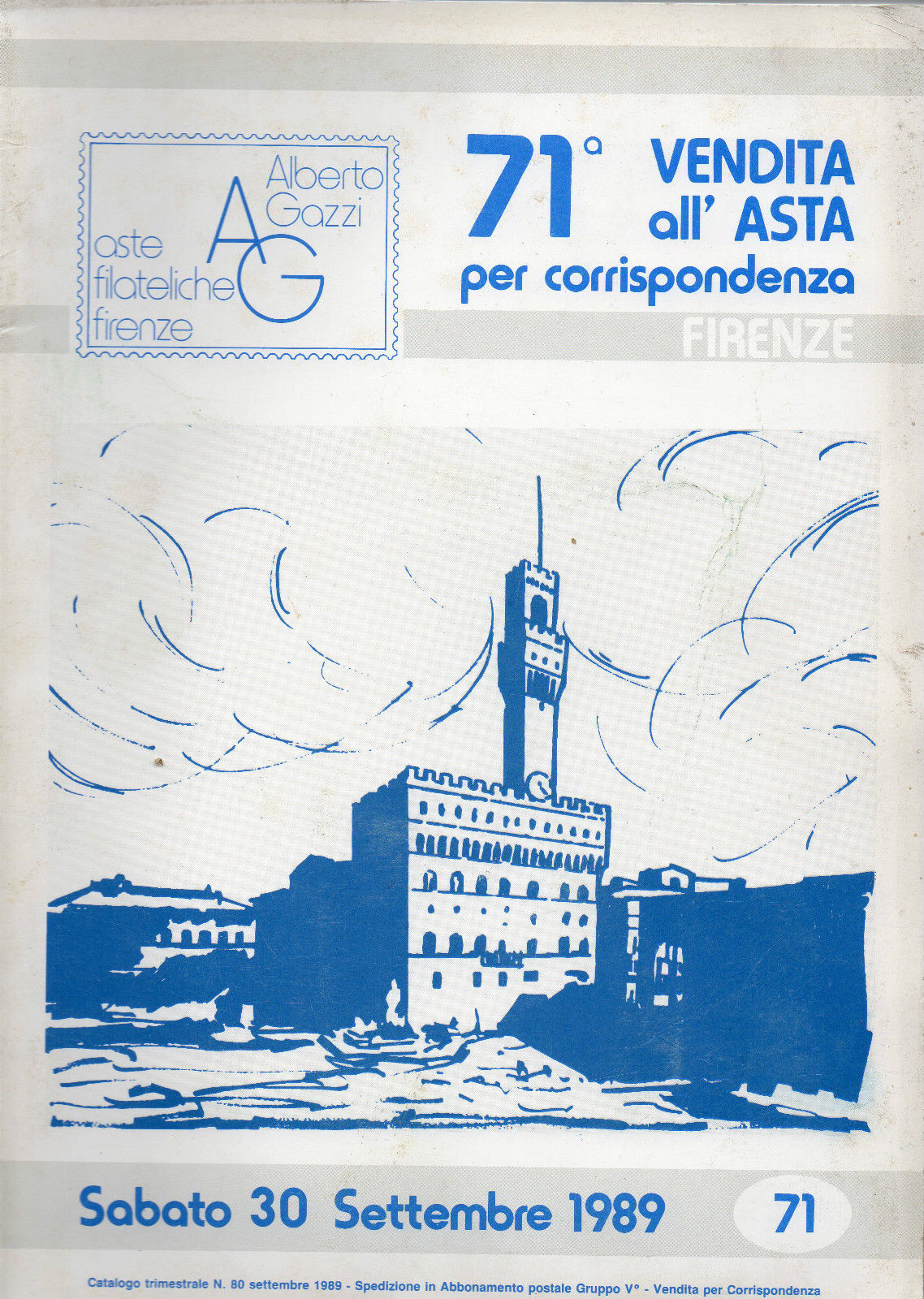 71a VENDITA ALL'ASTA PER CORRISPONDENZA FIRENZE di AA.VV., Litografia Ip, 1989, pp. 114+2, cm 21,5x30.